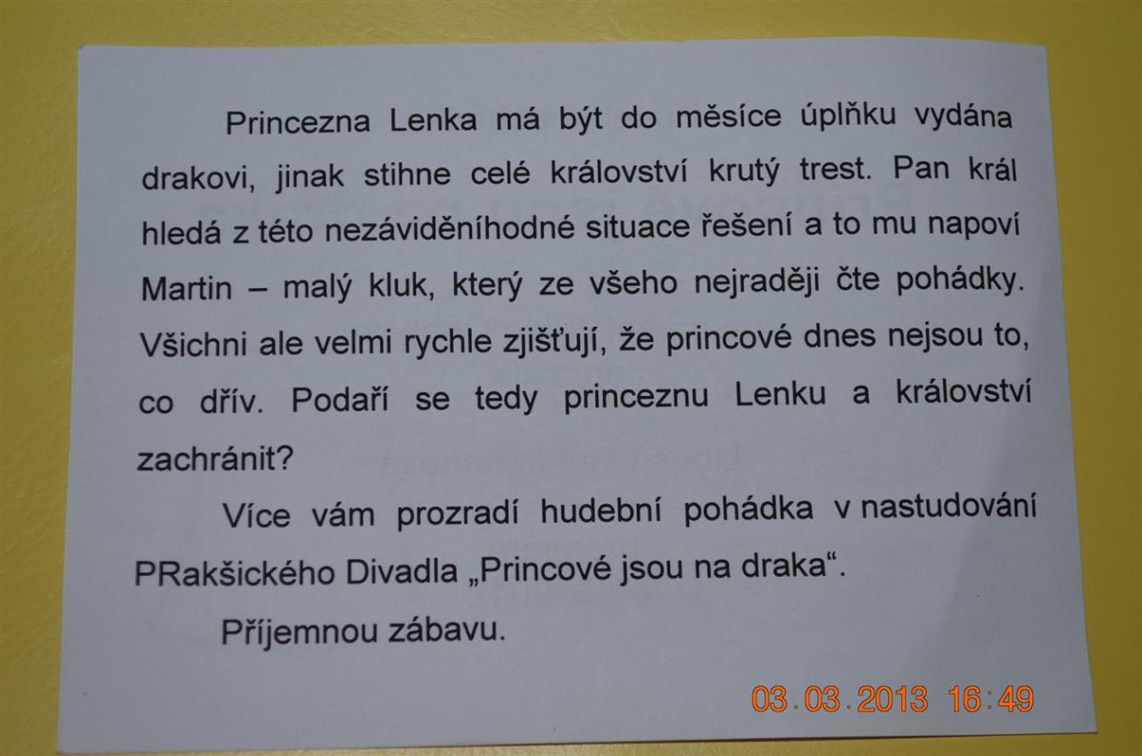 Prakšické divadlo "Princové jsou na draka" 3.3.2013